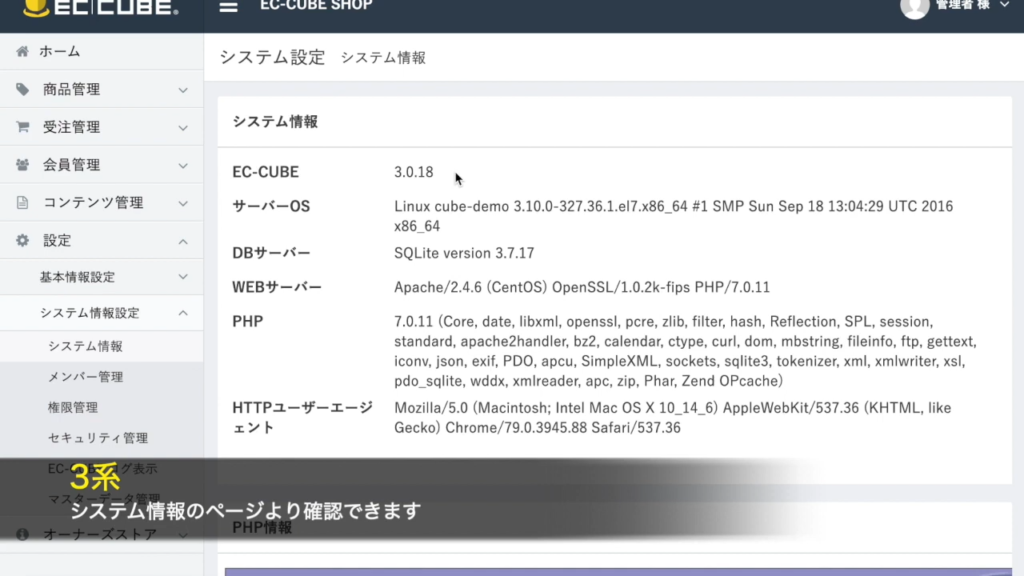 引用元: YouTube「EC-CUBEのバージョン確認方法」EC-CUBE公式チャンネル